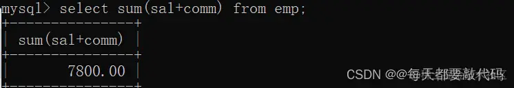 从结果上看,明显不对; 原因在于comm字段有null值,最终结合在一块的一行的结果就是null,sum会忽略掉,正确的做法是将comm字段转换成0