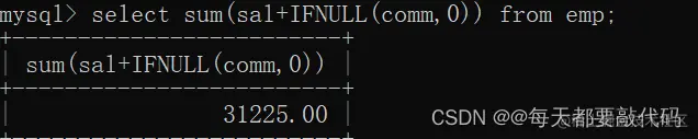 这就需要ifnull() 空处理函数:ifnull(可能为NULL的数据,被当做什么处理) : 属于单行处理函数;例如:IFNULL(comm,0)
