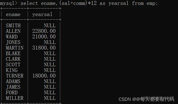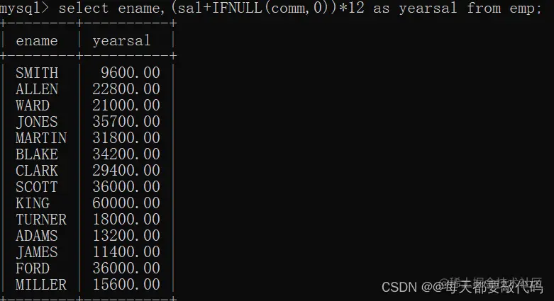 select ename,(sal+IFNULL(comm,0))*12 as yearsal from emp; -- 正确写法