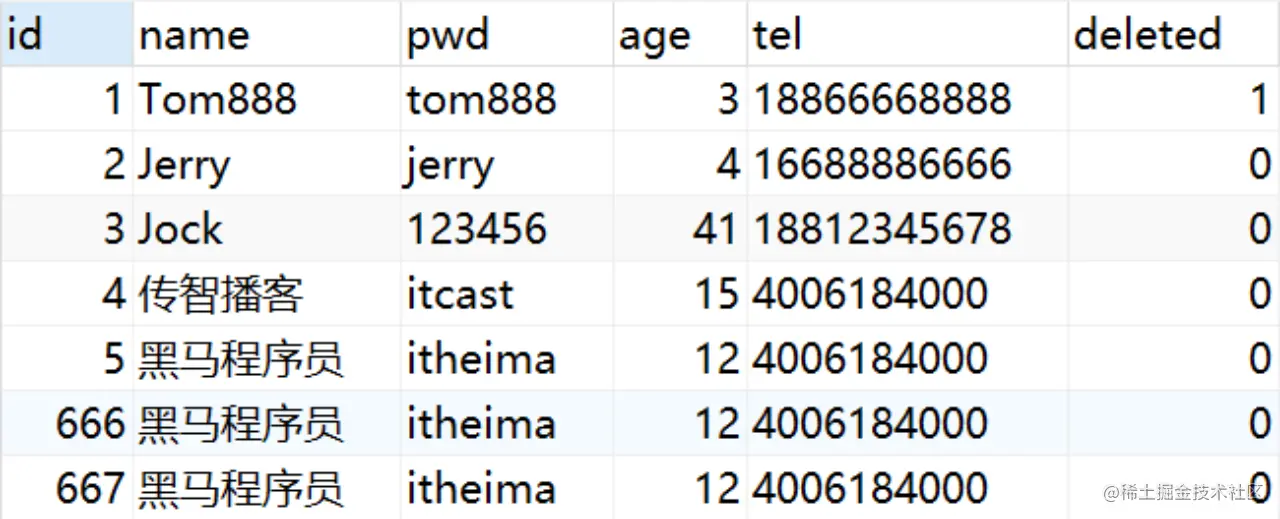 执行SQL语句:UPDATE tbl_user SET deleted=1 WHERE id=? AND deleted=0