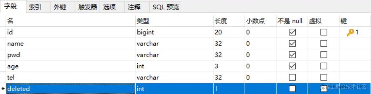 - 数据库表中添加逻辑删除标记字段