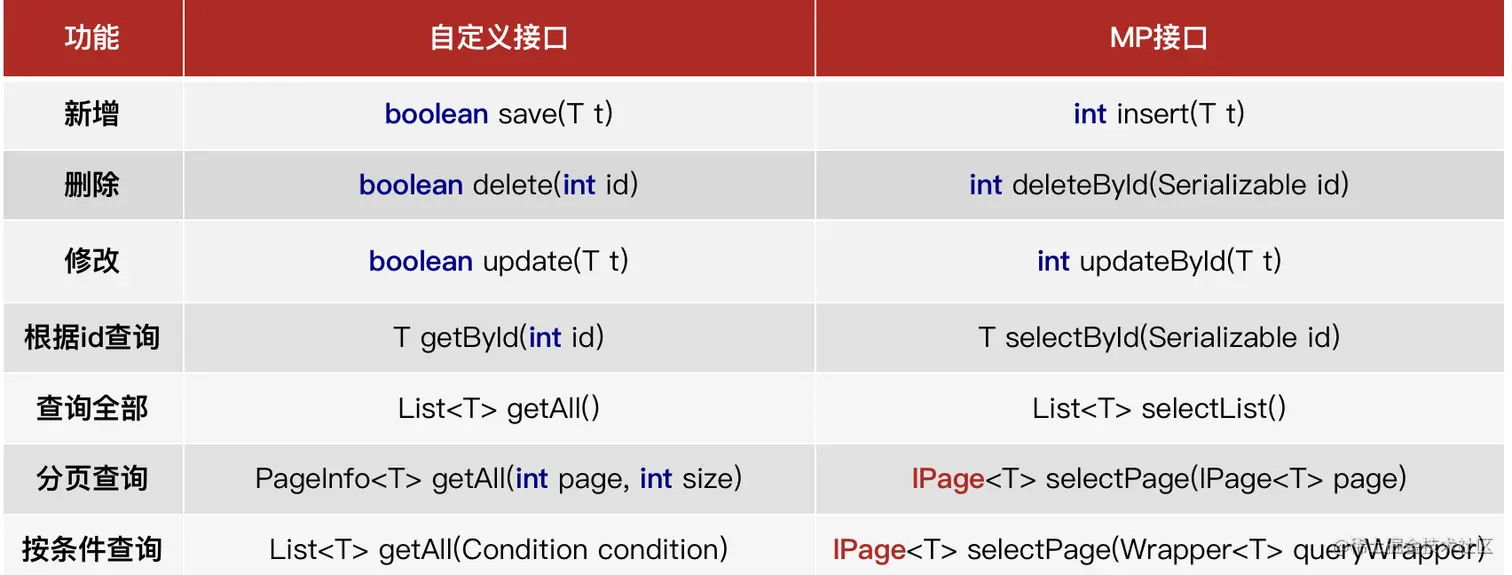 - MyBatisPlus将书写复杂的SQL查询条件进行了封装,使用编程的形式完成查询条件的组合