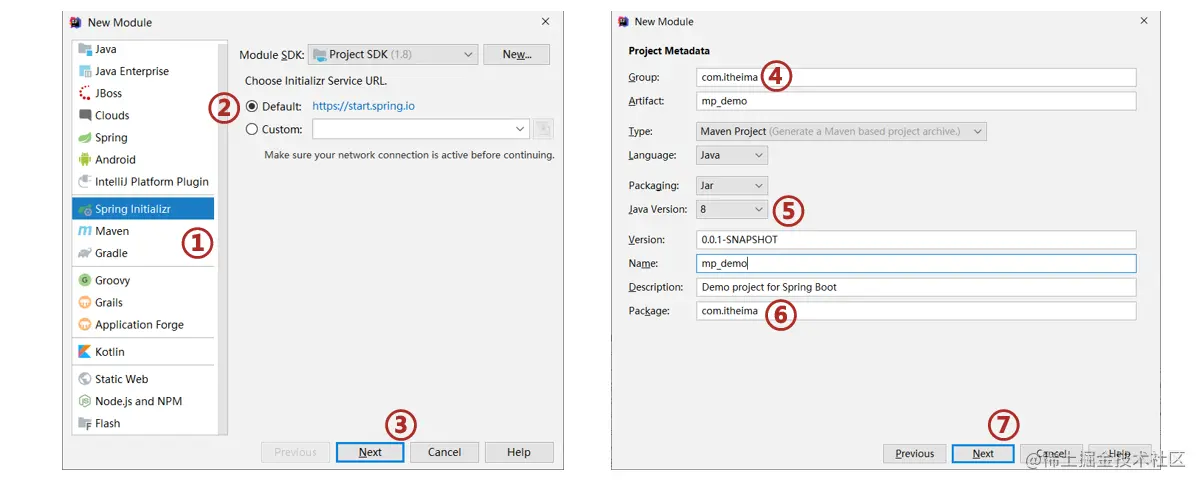 - 创建新模块,选择Spring初始化,并配置模块相关基础信息