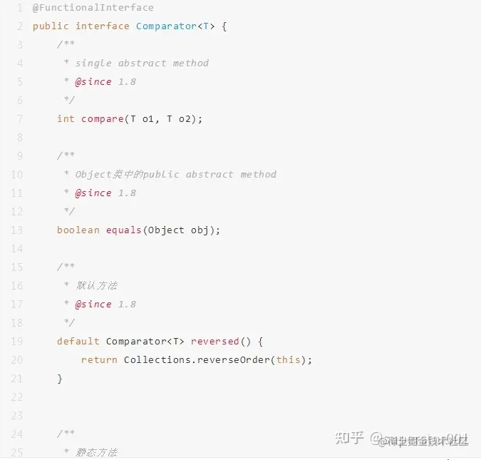 满足这些条件的interface,就可以被视为函数式接口。例如Java 8中的Comparator接口: