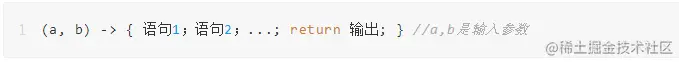 Lambda表达式包括三部分:输入、函数体、输出。表示出来的话就是下面这个样子: