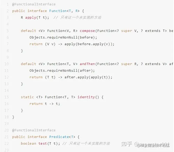 下面将Java提供的Function、Predicate这两个函数接口的源码,摘抄如下: