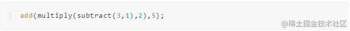 假设我们要计算这样一个表达式:(3-1)*2+5。如果按照普通的函数调用的方式写出来,就是下面这个样子: