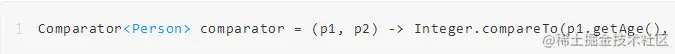-> 前面的()是Comparator接口中compare方法的参数列表,->后面则是compare方法的方法体。