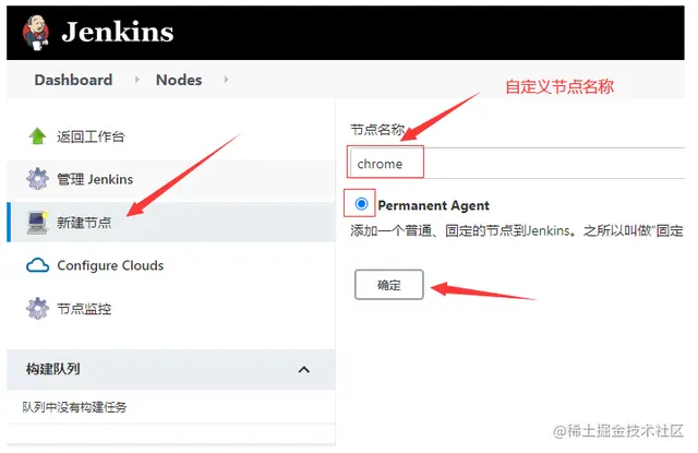 - 打开jenkins管理,进入节点管理页面,点击新建节点