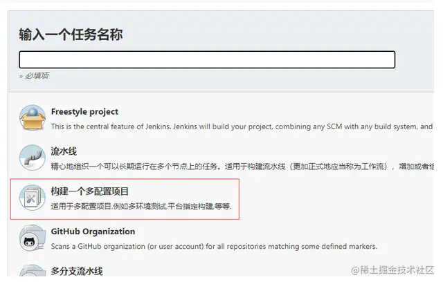 要想在多个节点上并发执行项目,需要创建jenkins的多配置项目。