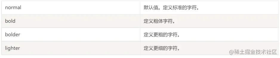字体粗细: font-weight 属性设置不同的字体粗细.