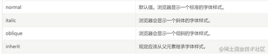 字体样式: 主要是用于指定斜体文字的字体样式属性。