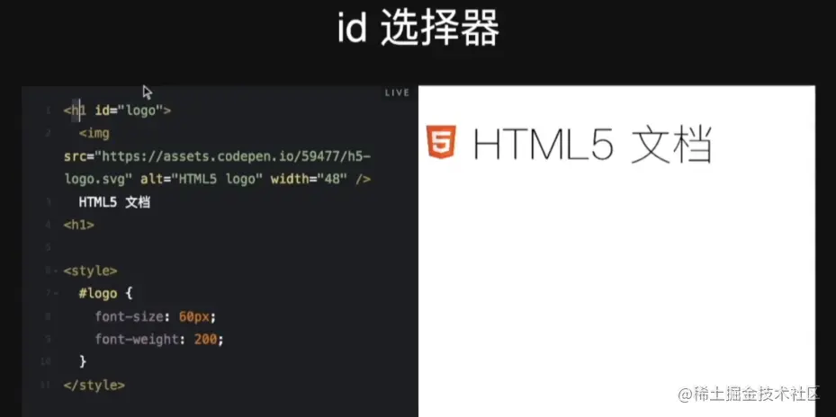 id选择器: 选中对应id的标签,注意,标签应具有唯一性.