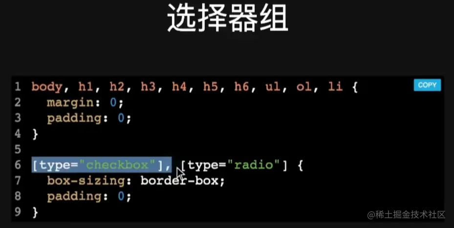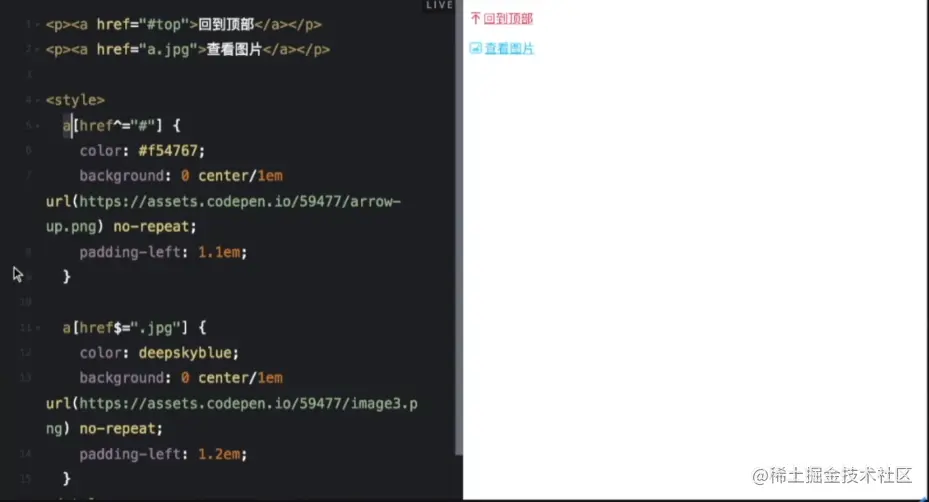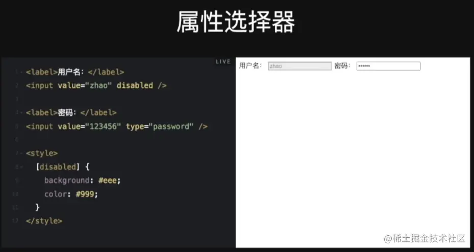属性选择器: 选择拥有对应属性的标签,还可以进一步选中对应标签中拥有相应属性的标签以及根据不同规则进行匹配查找.