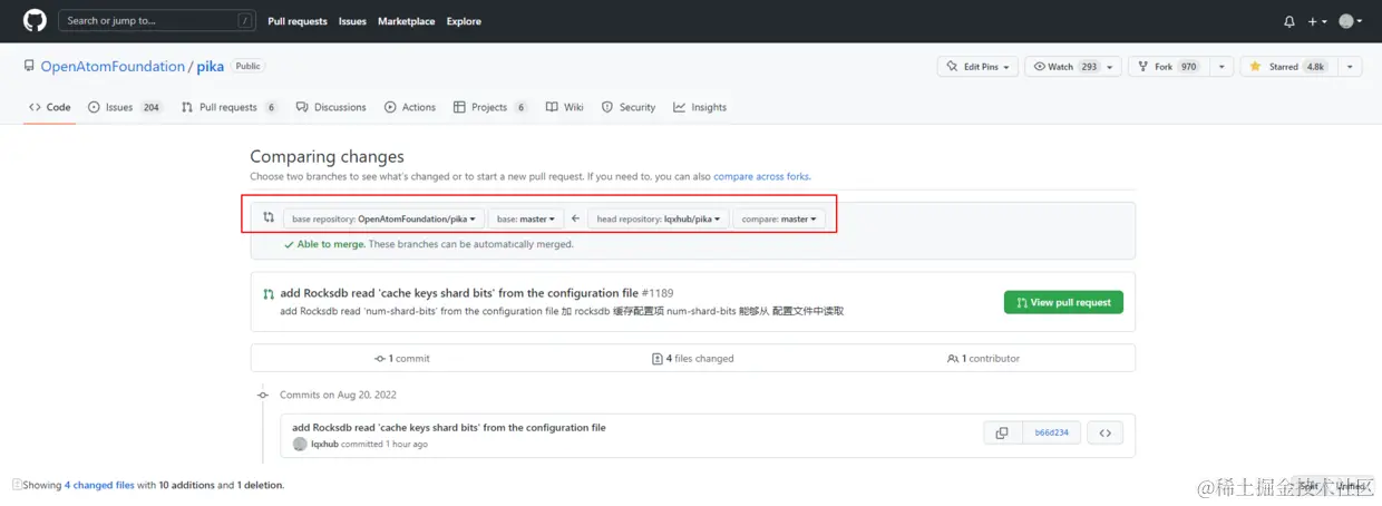因为我已经把这个PR提交了,所以显示的是 View pull request,正常的显示的是 create pull request 然后根据提示创建这个PR就好了。