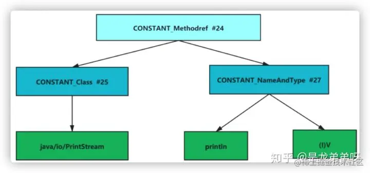 符号引用就是一些字面量的引用,和虚拟机的内部数据结构和内存分布无关。比较容理解的就是在 Class 类文件中,通过常量池进行了大量的符号引用。但是在程序实际运行时,只有符号引用是不够的,比如当如下 println() 方法被调用时,系统需要明确知道该方法的位置