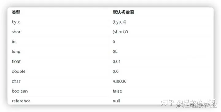 Java 虚拟机为各类型变量默认的初始值如表所示: