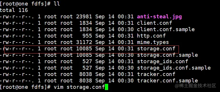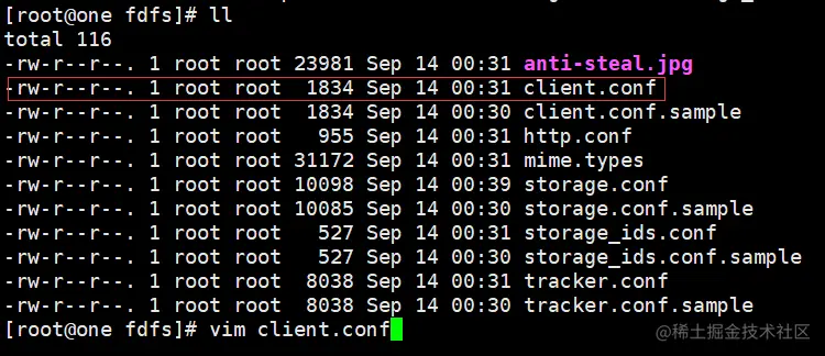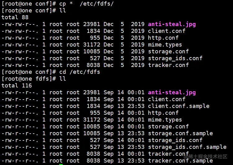 进入到conf目录 拷贝文件: cp * /etc/fdfs/