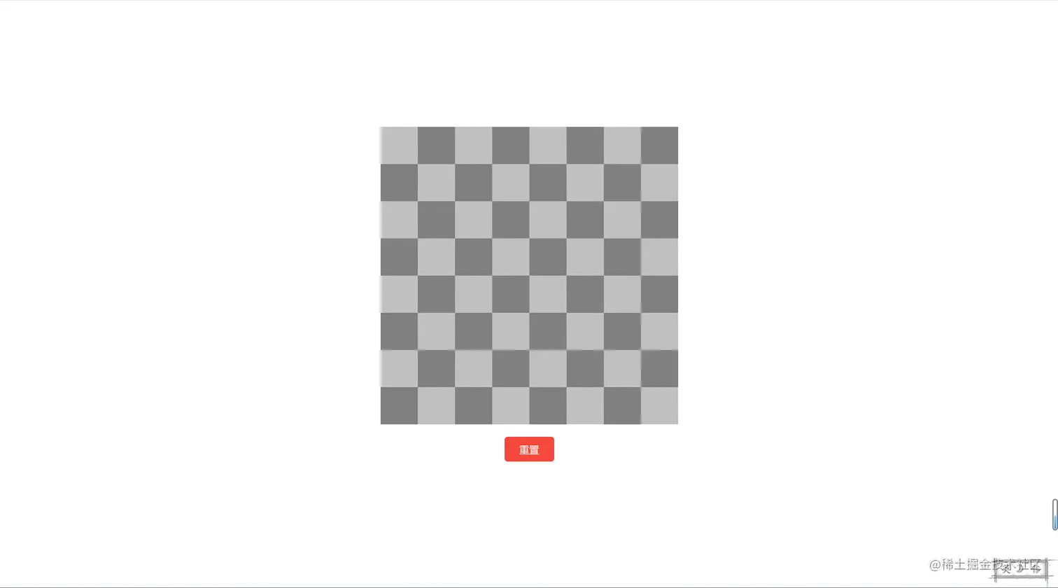 这里的话,由于是自己周末随便写写,主要是用来玩的,样式问题忽略就好,简单写一个看个大概就好。大概的思路就是实现一个8*8的棋盘,外加一个重置按钮(用于发现空间管理失败后)
