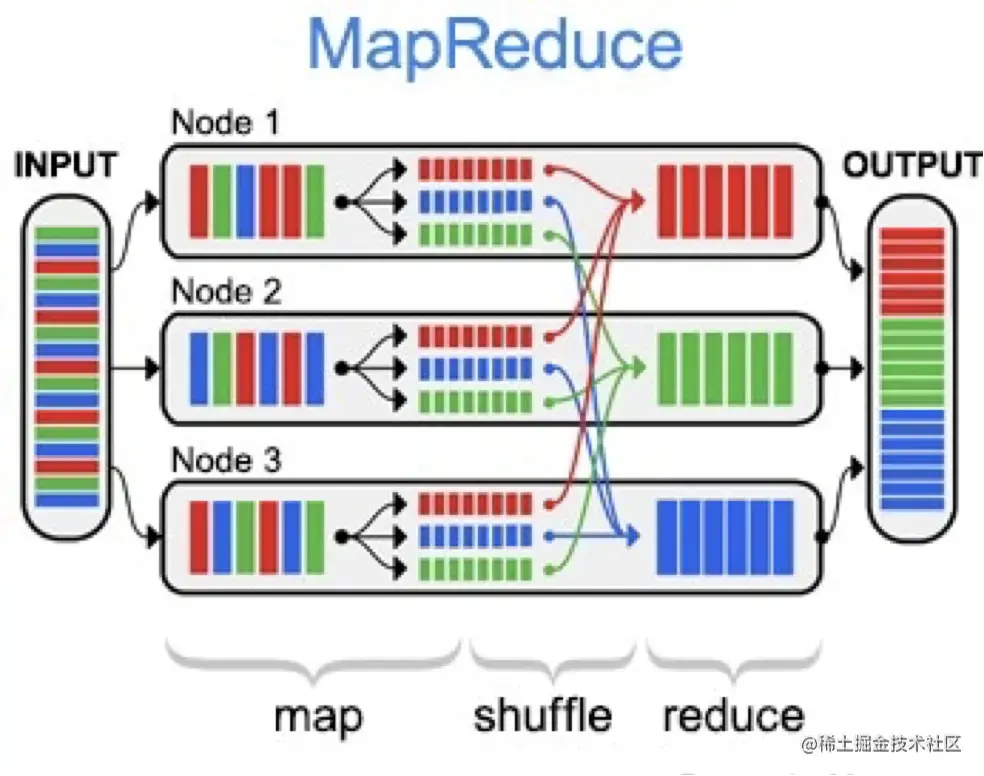 - 在开源实现的mapreduce中,存在map,shuffle,reduce三个阶段