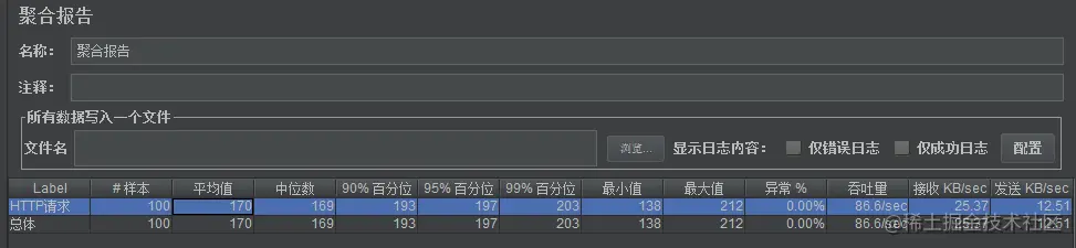 ② 在聚合报告标签页下, 运行测试计划, 结果如下 :
