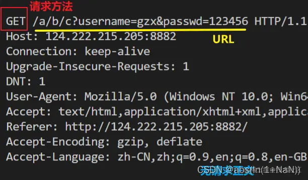 我们在表单里输入一些信息,点击提交。此时服务端可以接收到表单提交的请求。Get方法提交的数据在URL中,不会出现在请求正文里,同时我们在浏览器的网址也可以看到我们提交的参数。GET方法通过 URL来提交参数。
