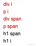 如果要将上述 HTML 中,<div> 和 <p> 下的 <span> 和 <i> 的 color 设置为 red,正常的 CSS 可能是这样: