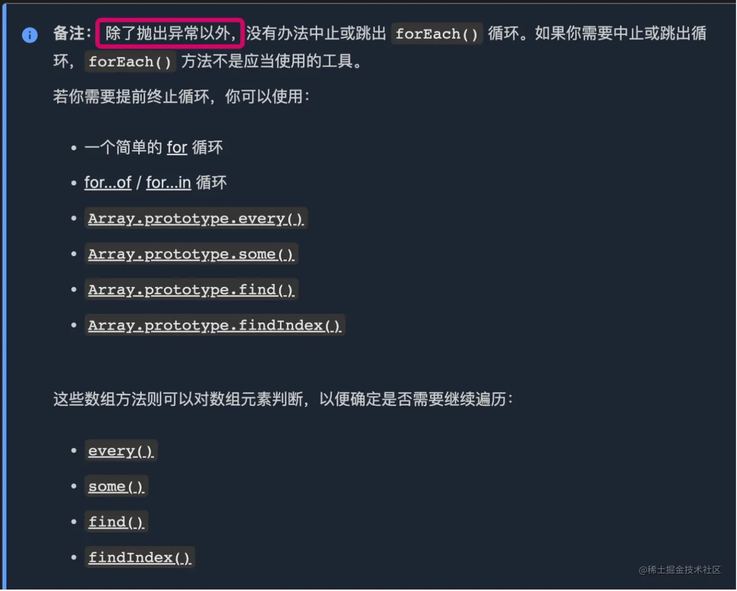到这里我想你已经明白了为什么不能在forEach里使用break了。回到本文的题目上来。