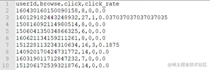 用户点击率即为action.txt文件中每个用户behaivor列中1的数量除以0的数量。
