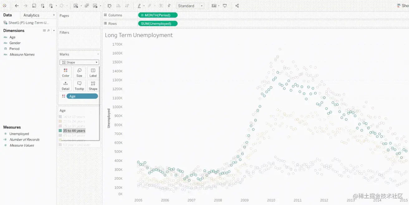 在计算机诞生之前,可视化都是静态作品,人们只能通过看来理解数据。随着计算机图形的发展,交互成为一个重要研究方向,可视化和图形交互的融合,产生了探索式数据分析。比如下面的数据分析工具Tableau的交互界面(www.tableau.com。