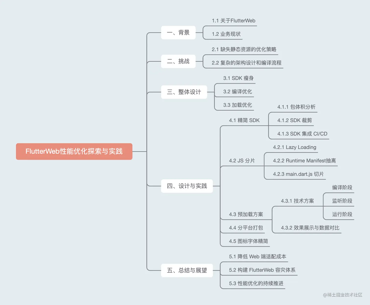 然后,通过FlutterWeb编译流程产物,客观分析了美团FlutterWeb 在缺失静态资源的优化策略和复杂的架构设计、编译流程方向面临的挑战。