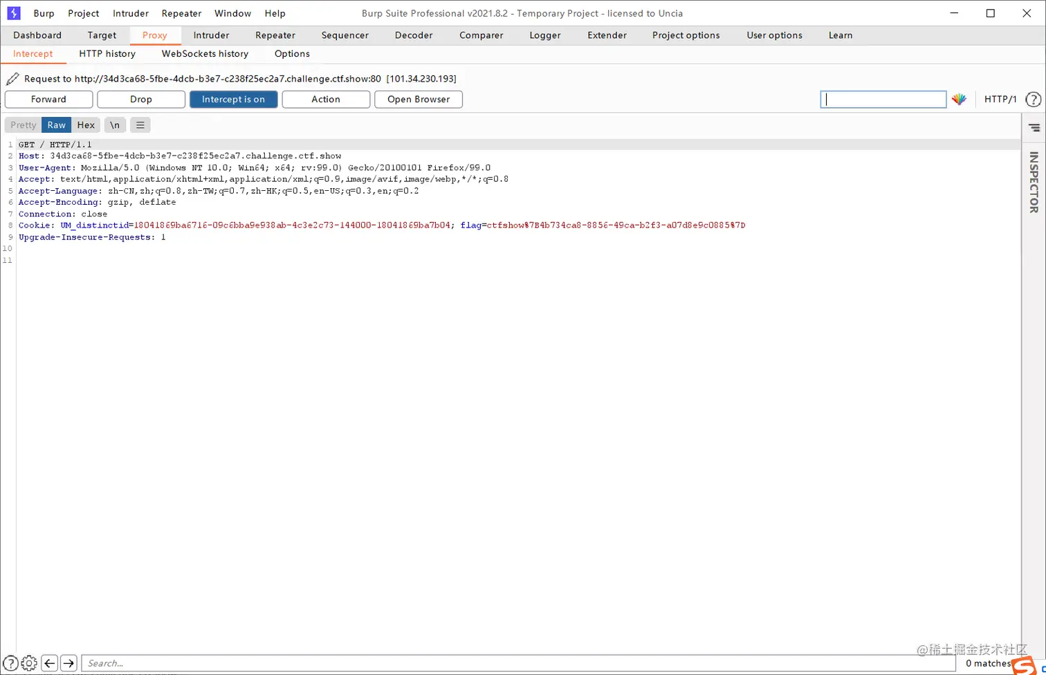 这里提示利用cookie,直接使用bp抓包,然后进行重放包。就找到了flag