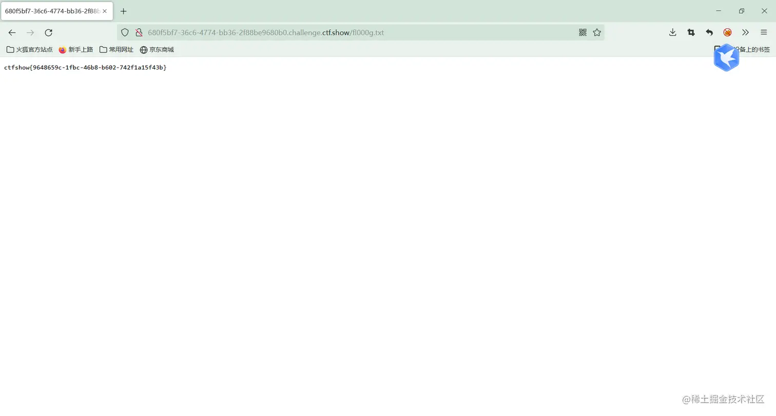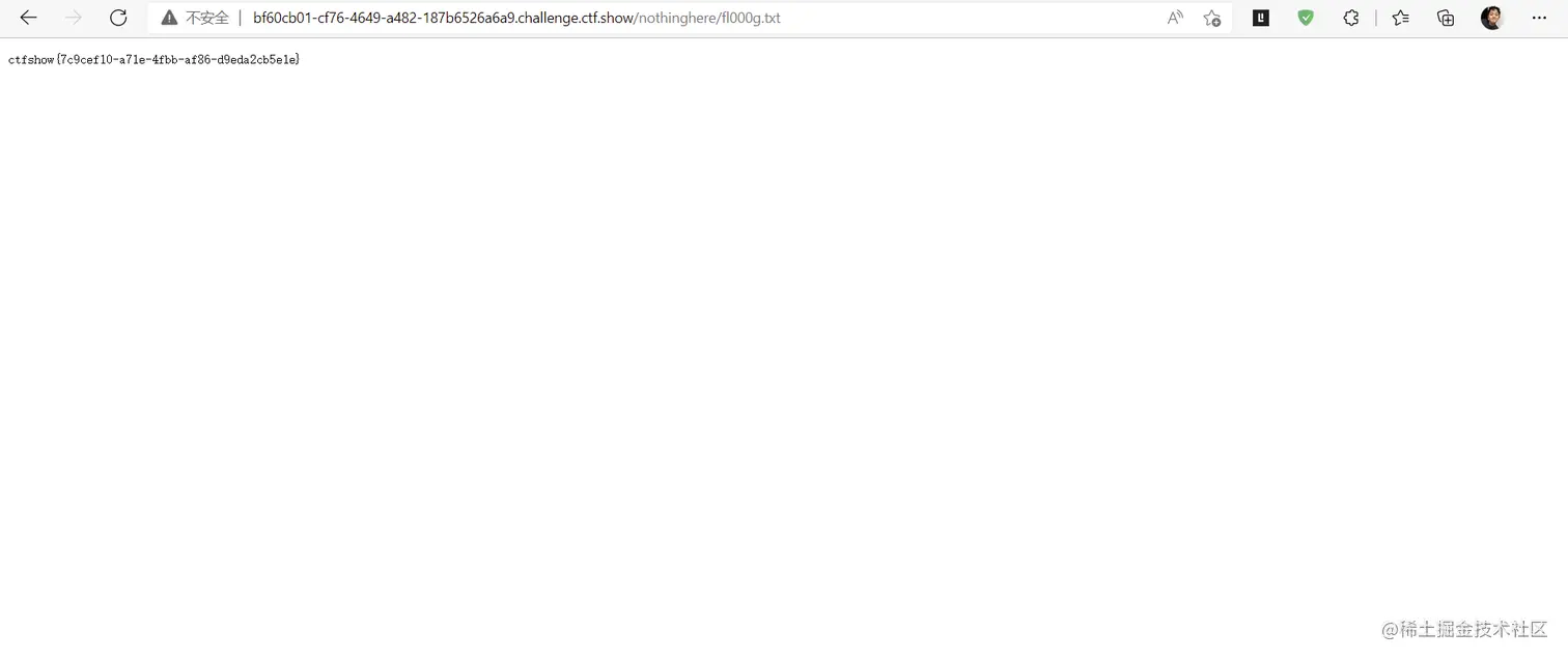 然后尝试在url里面访问/nothinghere/fl000g.txt