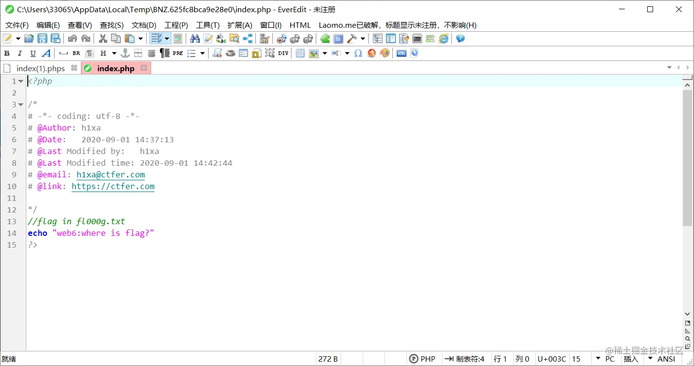 这里直接在url中查看index.phps.