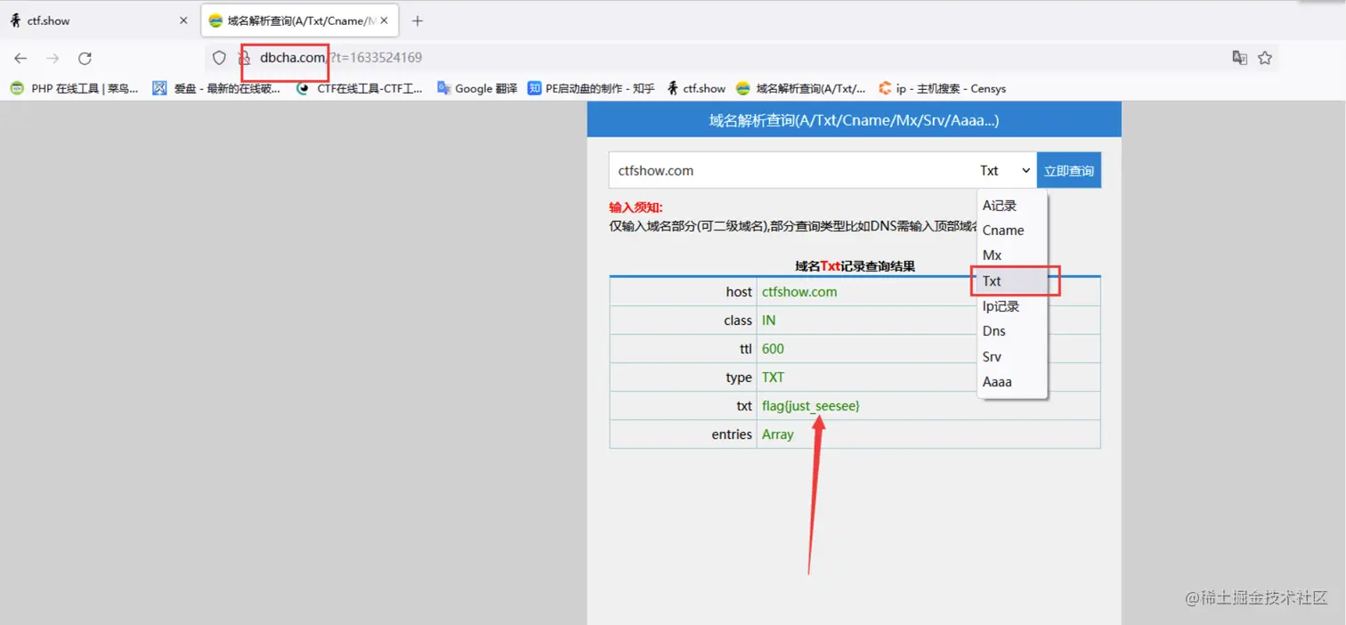 这里提示说是域名可能隐藏着信息。直接进行域名查询dbcha.com/