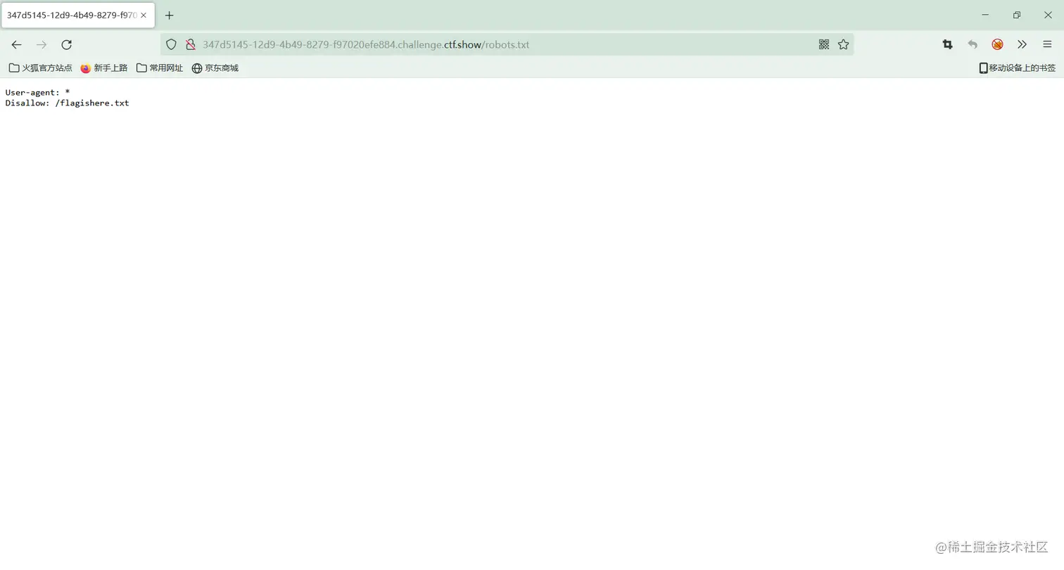 这里先访问robots.txt,robots.txt是一个协议,是搜索引擎中访问网站的时候要查看的第一个文件。robot.txt文件告诉蜘蛛程序在服务器上什么文件是可以被查看的。