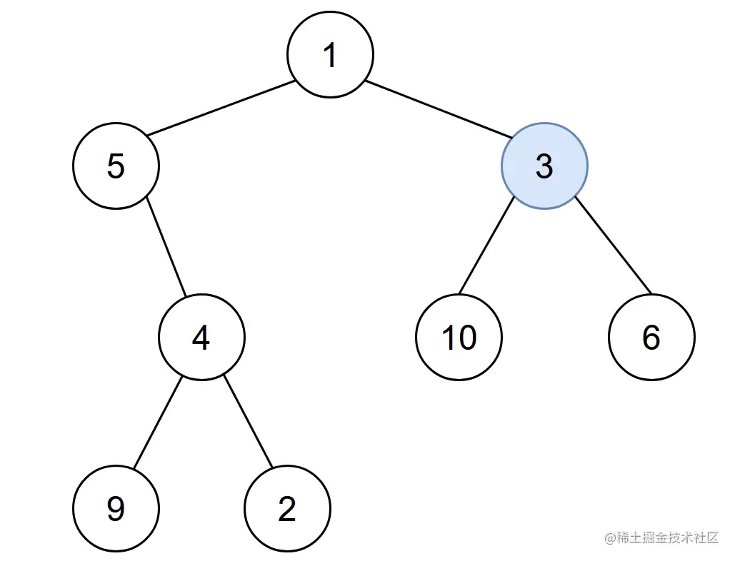 输入: root = [1,5,3,null,4,10,6,9,2], start = 3
