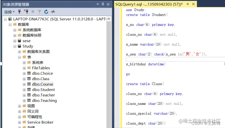 - 利用企业管理器在已经建立的Study数据库中分别建立以下6个数据表。
