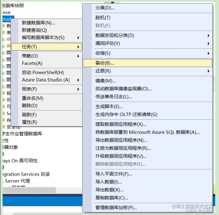 利用企业管理器的数据库备份功能,将以上建立的数据库Study备份到所建立的文件夹中,并将备份文件拷贝到U盘中,以备下面的题目使用。