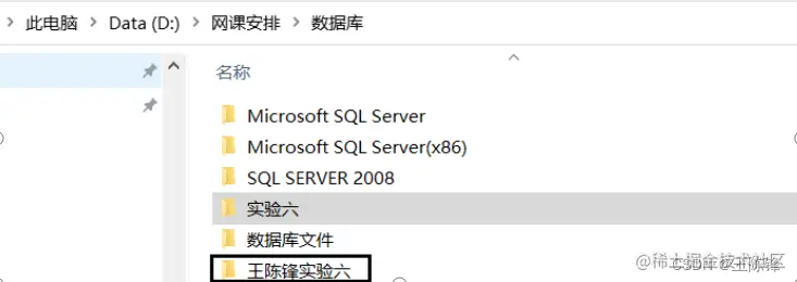 - 利用资源管理器,在D盘建立以自己的姓名为名称的文件夹,以便保存数据库。