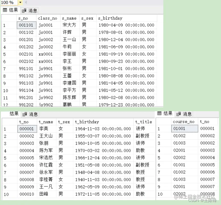 | 000004 | 陈为军 | 男 | 1970-3-2 | 助教 |