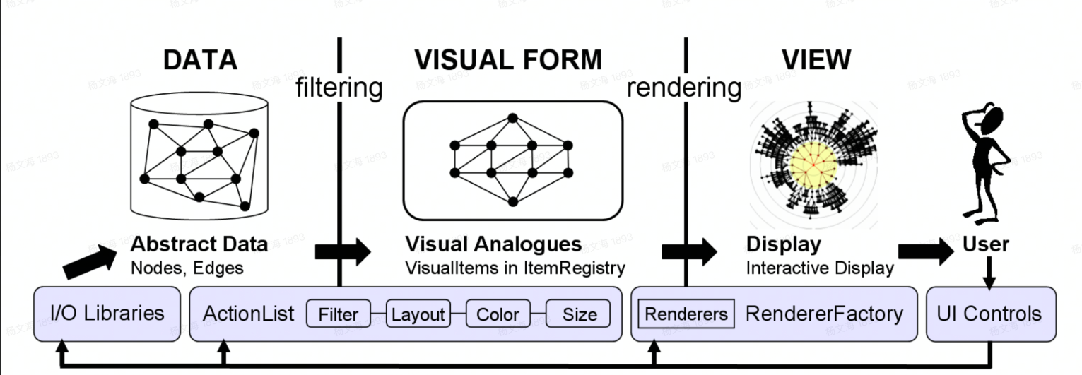 - 可视化渲染( Rendering and Display) 将定义好的图形转换成为图像,展现给观众。