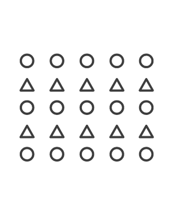- 如果一个对象中的一部分都向共同的方向去运动,那这些共同移动的部分就易被感知为一个整体。如下方左图,我们会按照相似原则把每行看作一个分组,但是右侧由于共同的运动方向,我们会把每列看作一个分组。