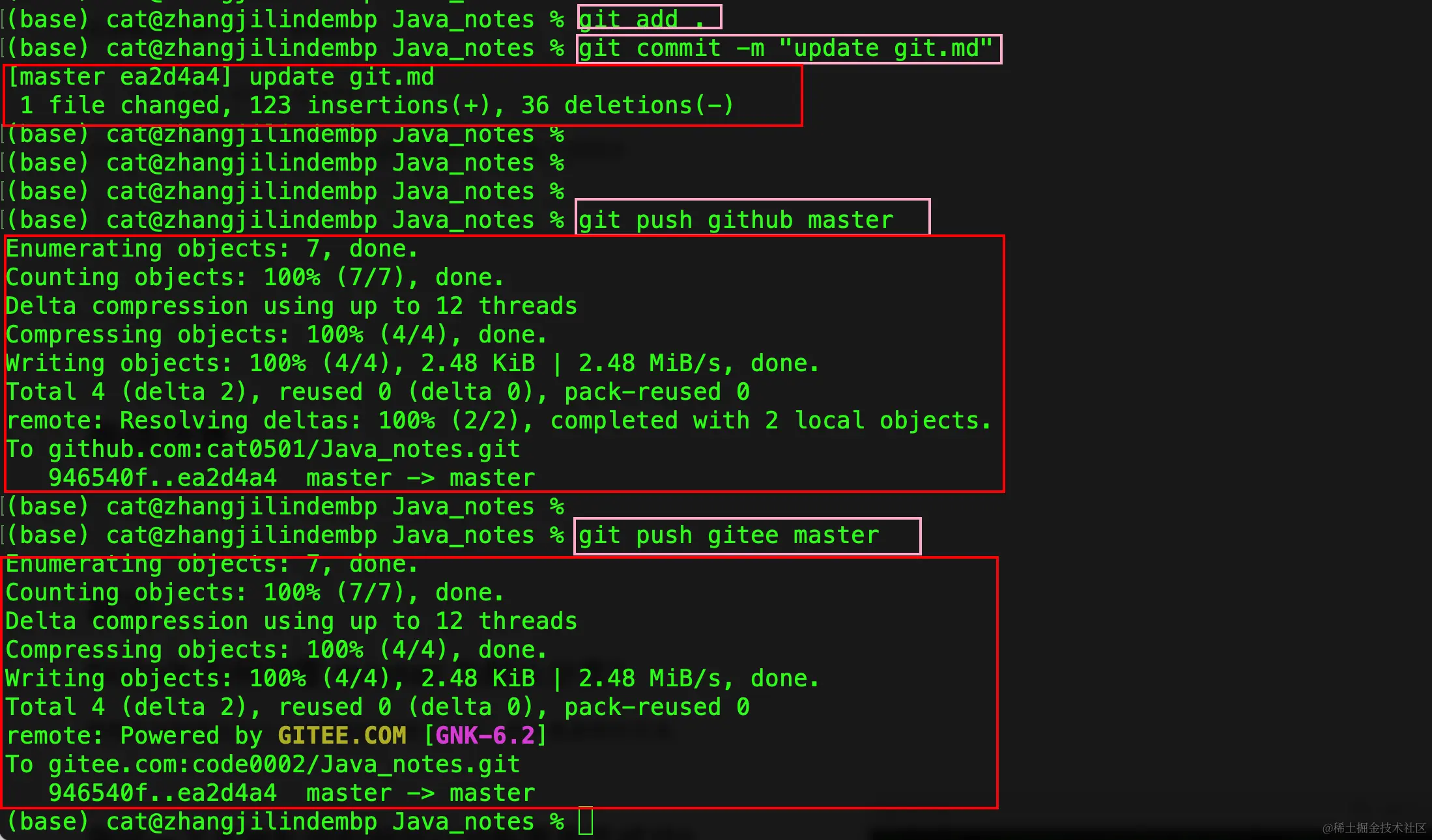 同样注意,远程库的名称叫 gitee,不叫 origin。