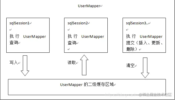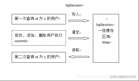 - 如果SqlSession执行了delete、insert、update操作并提交到数据库,MyBatis会清空一级缓存,保证了缓存中存储最新的信息,避免脏读,当一个SqlSession结束后该SqlSession中的一级缓存也就不存在;