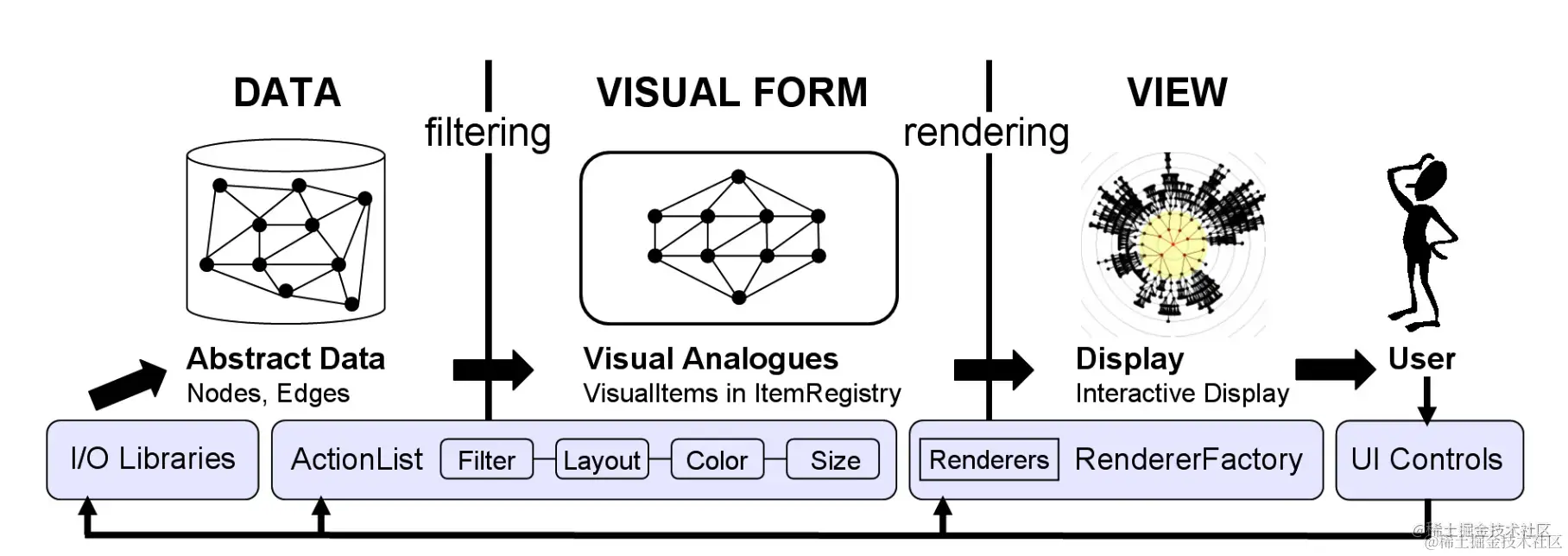一个可视化作品的诞生,要经历一系列流程,我们将其抽象成如下图所示的四个大的步骤。