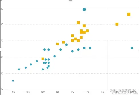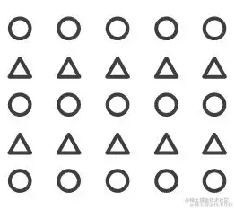 刺激物的形状、大小、颜色、强度等物理属性方面比较相似时,这 些刺激物就容易被组织起来而构成一个整体。如下图中,根据颜色和形状,将数据分为两组。