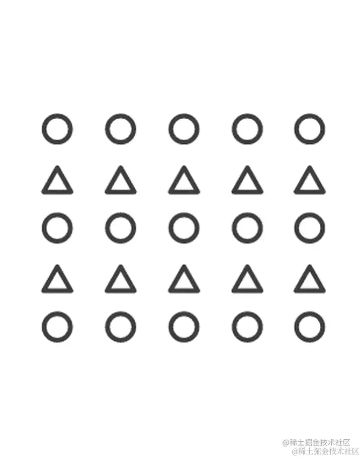 如果一个对象中的一部分都向共同的方向去运动,那这些共同移动的部分就易被感知为一个整体。如下方左图,我们会按照相似原则把每行看作一个分组,但是右侧由于共同的运动方向,我们会把每列看作一个分组。