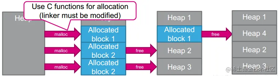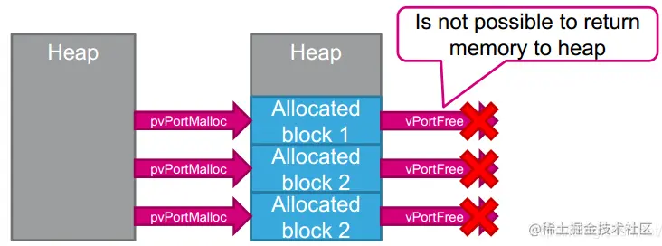 每当任务,队列或是信号量被创建时,内核需要进行动态内存分配。虽然可以调用标准的 malloc()与 free()库函数,但必须承担以下若干问题: