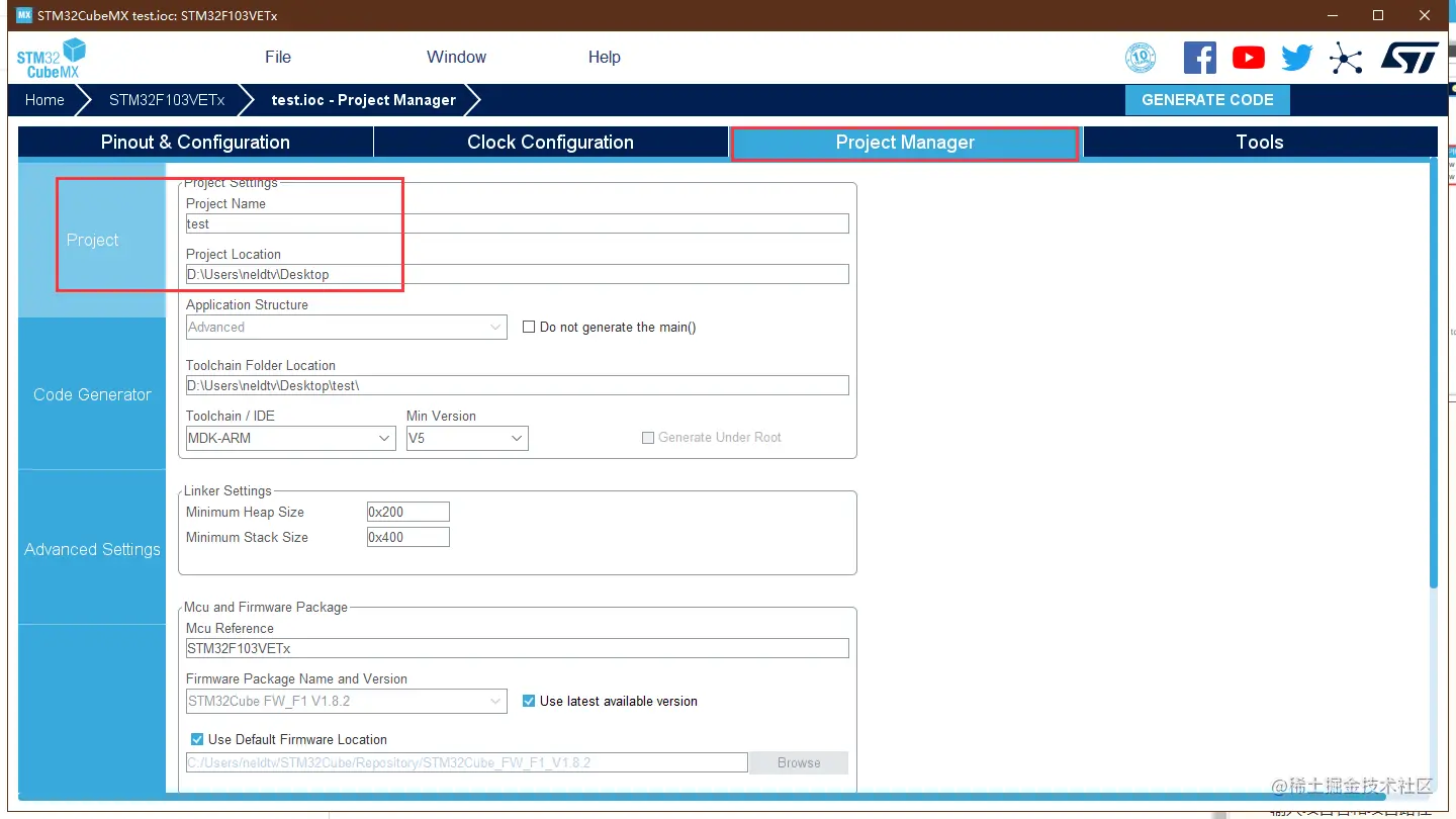 点击 GENERATE CODE 生成代码